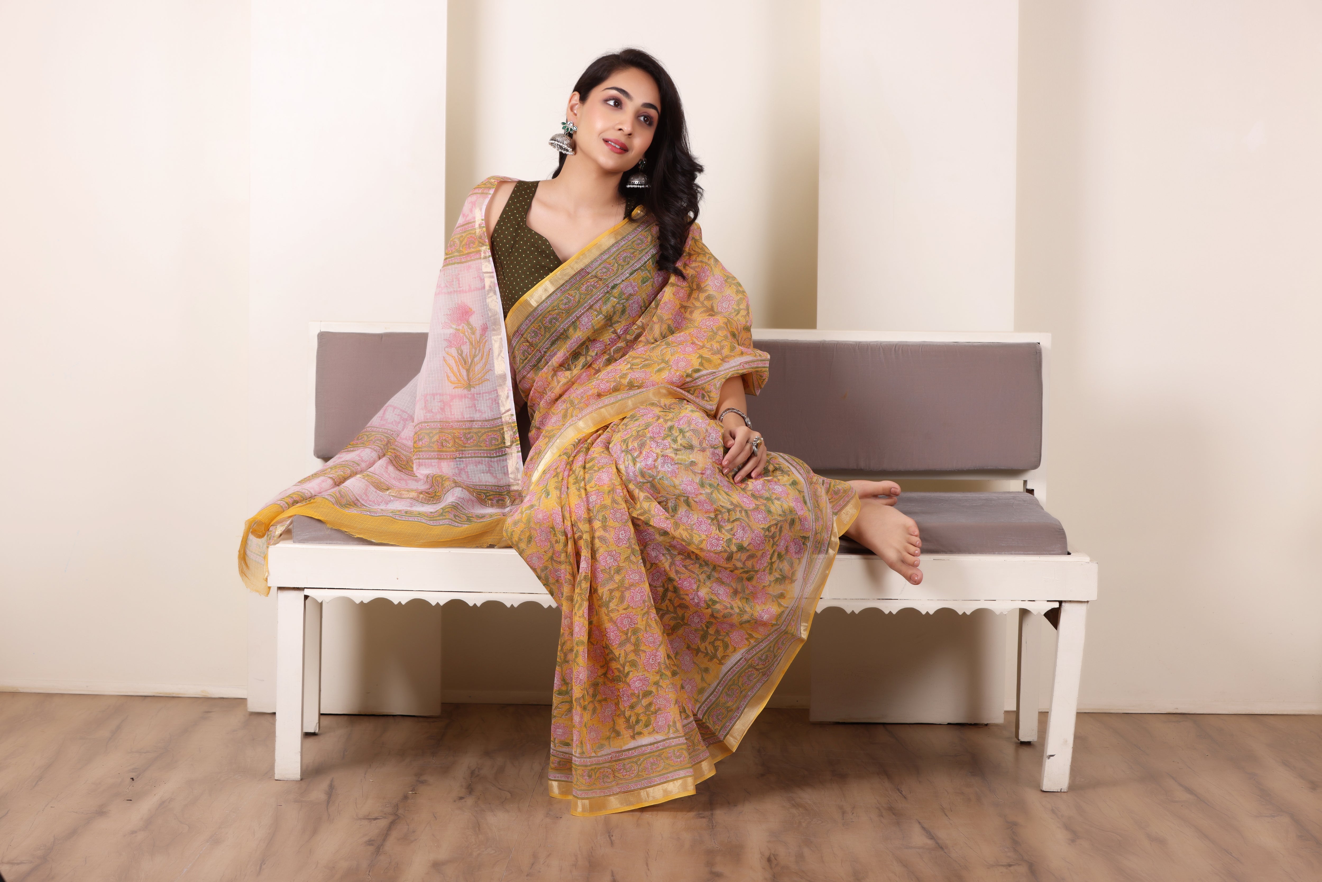 Our sarees are crafted from 100% pure, skin-friendly cotton with no synthetic blends, offering feather-light comfort ideal for hot climates. They’re easy to wear and maintain, with a naturally elegant drape that flatters every silhouette. Each saree is ethically sourced and artisan-crafted, giving you timeless beauty that feels as good as it looks.