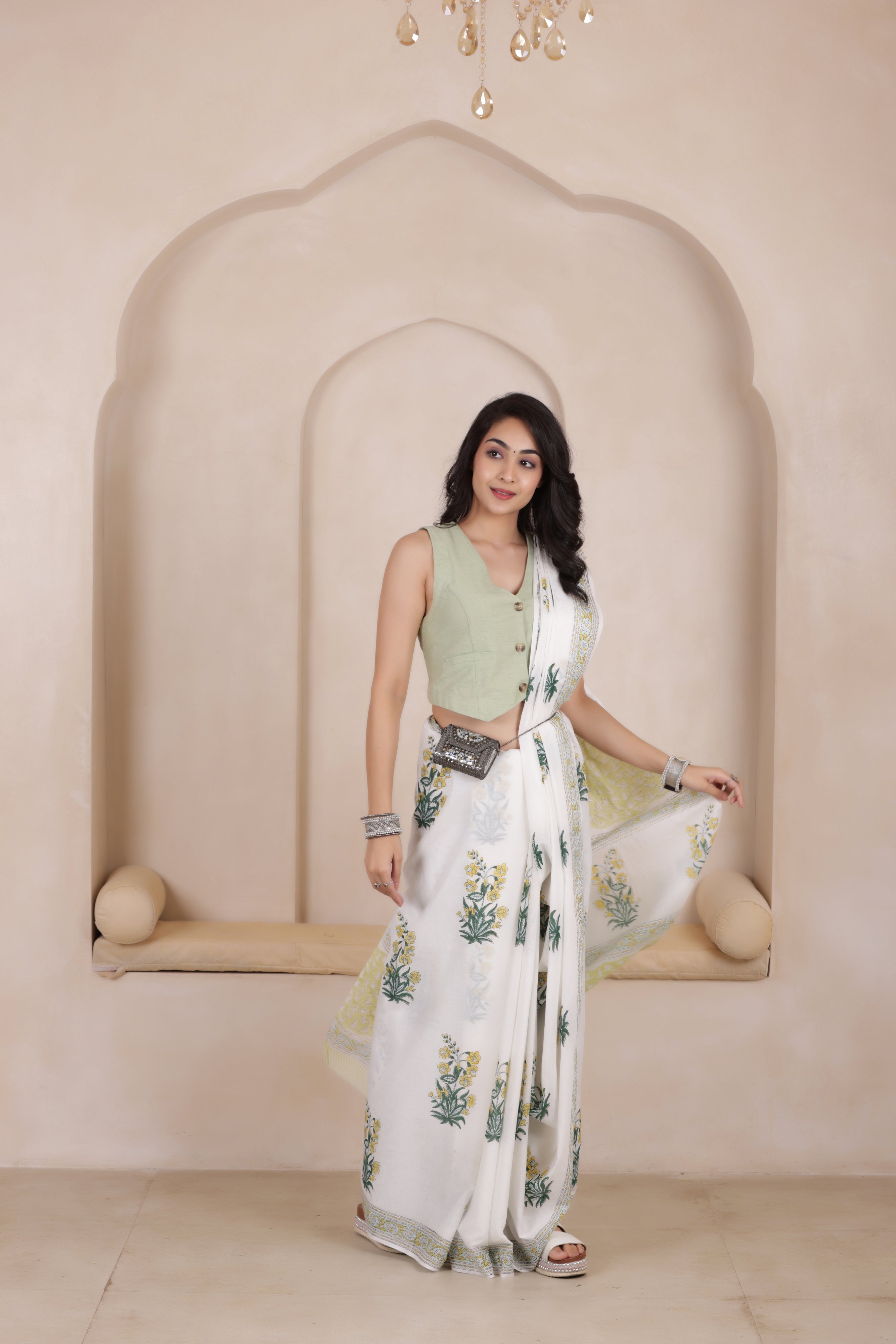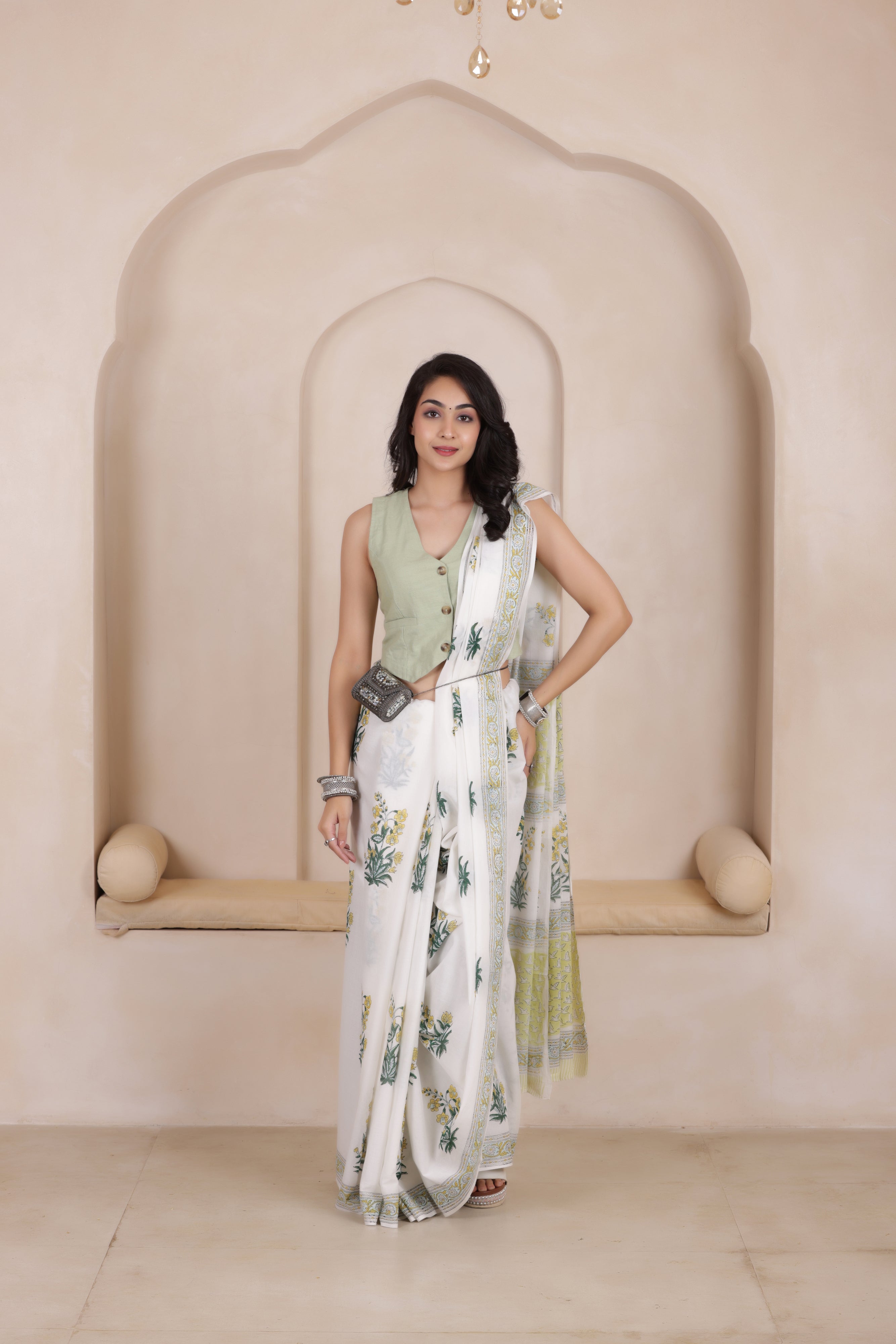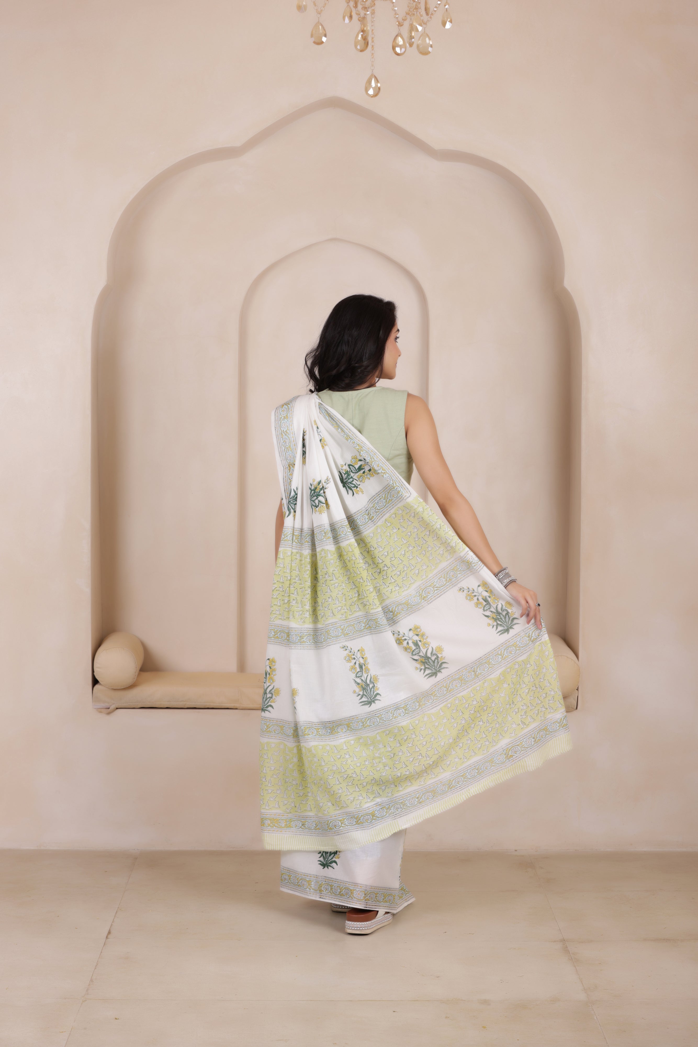 Pure Mulmul Cotton Saree with handblock prints– Lightweight Luxury for Everyday Elegance