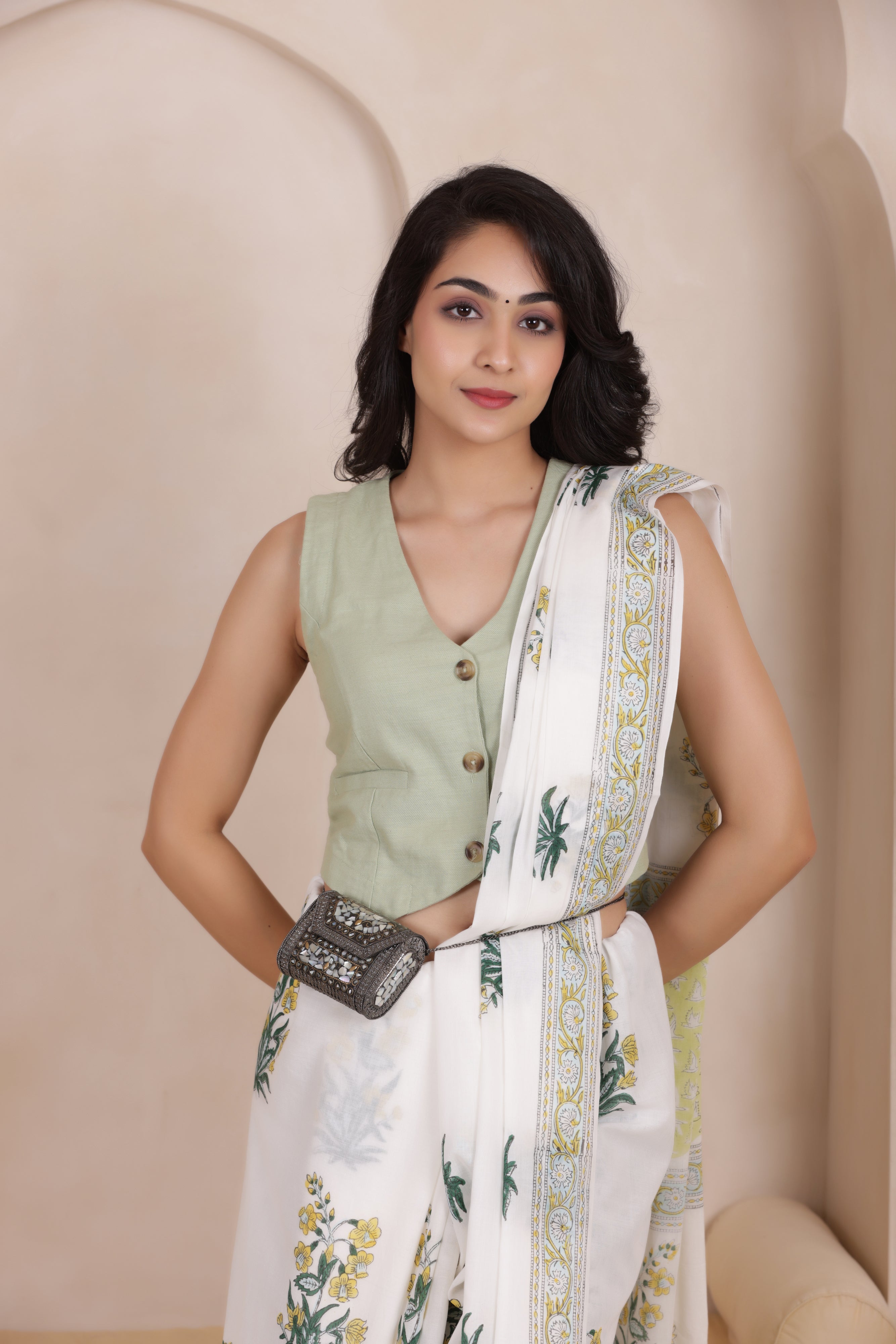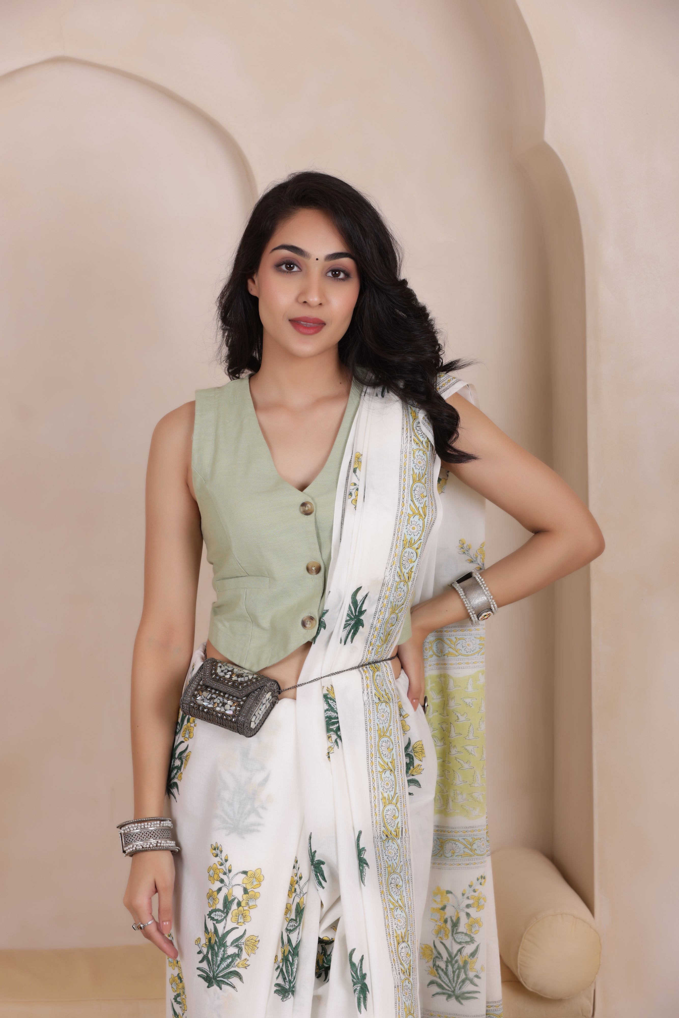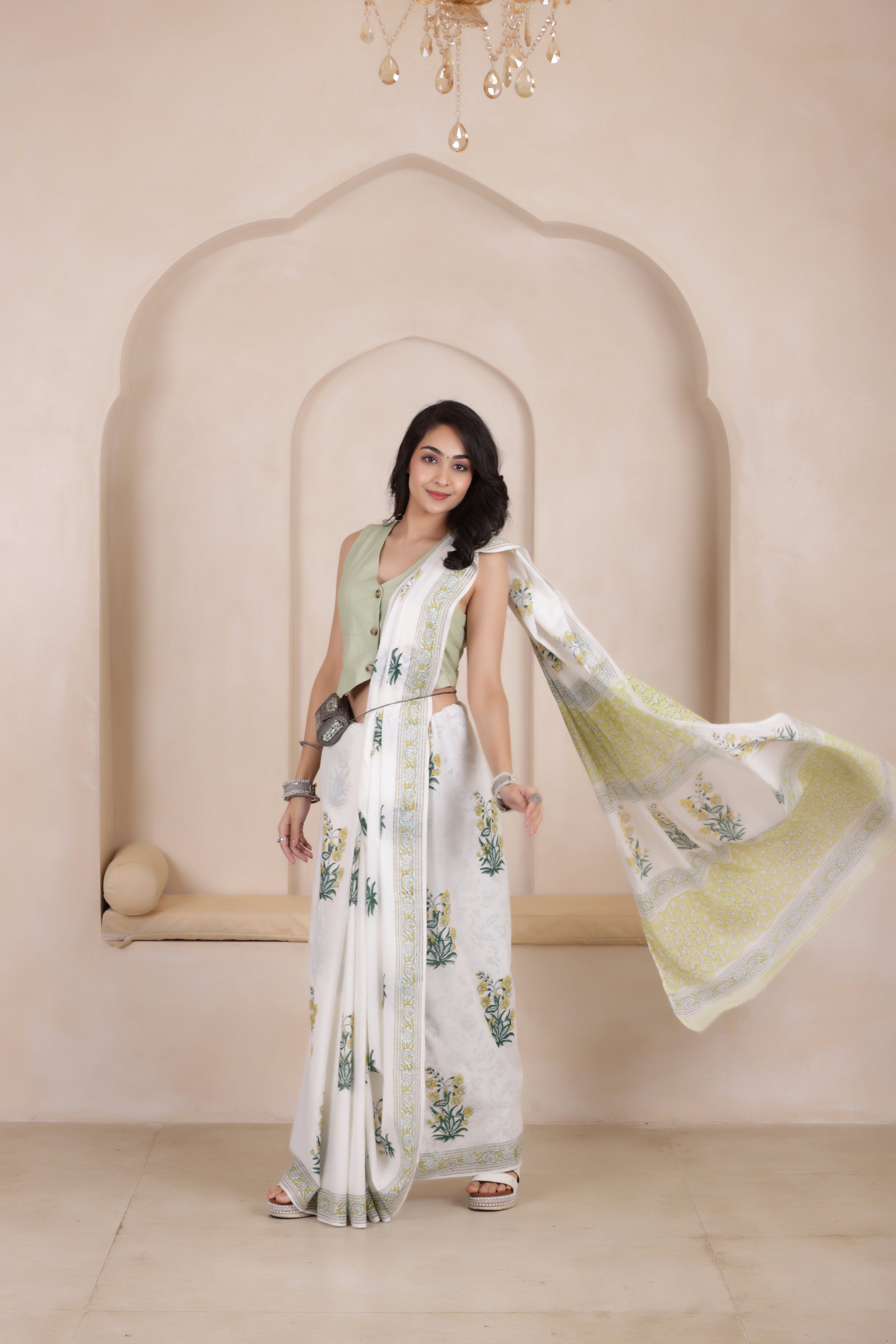 Pure Mulmul Cotton Saree with handblock prints– Lightweight Luxury for Everyday Elegance