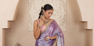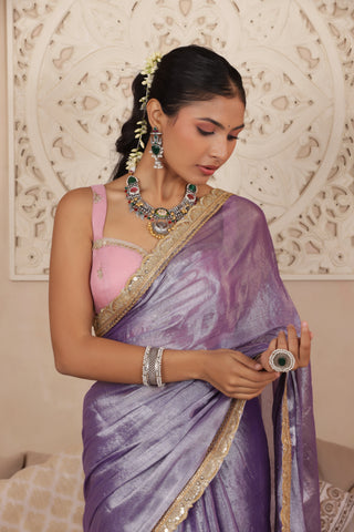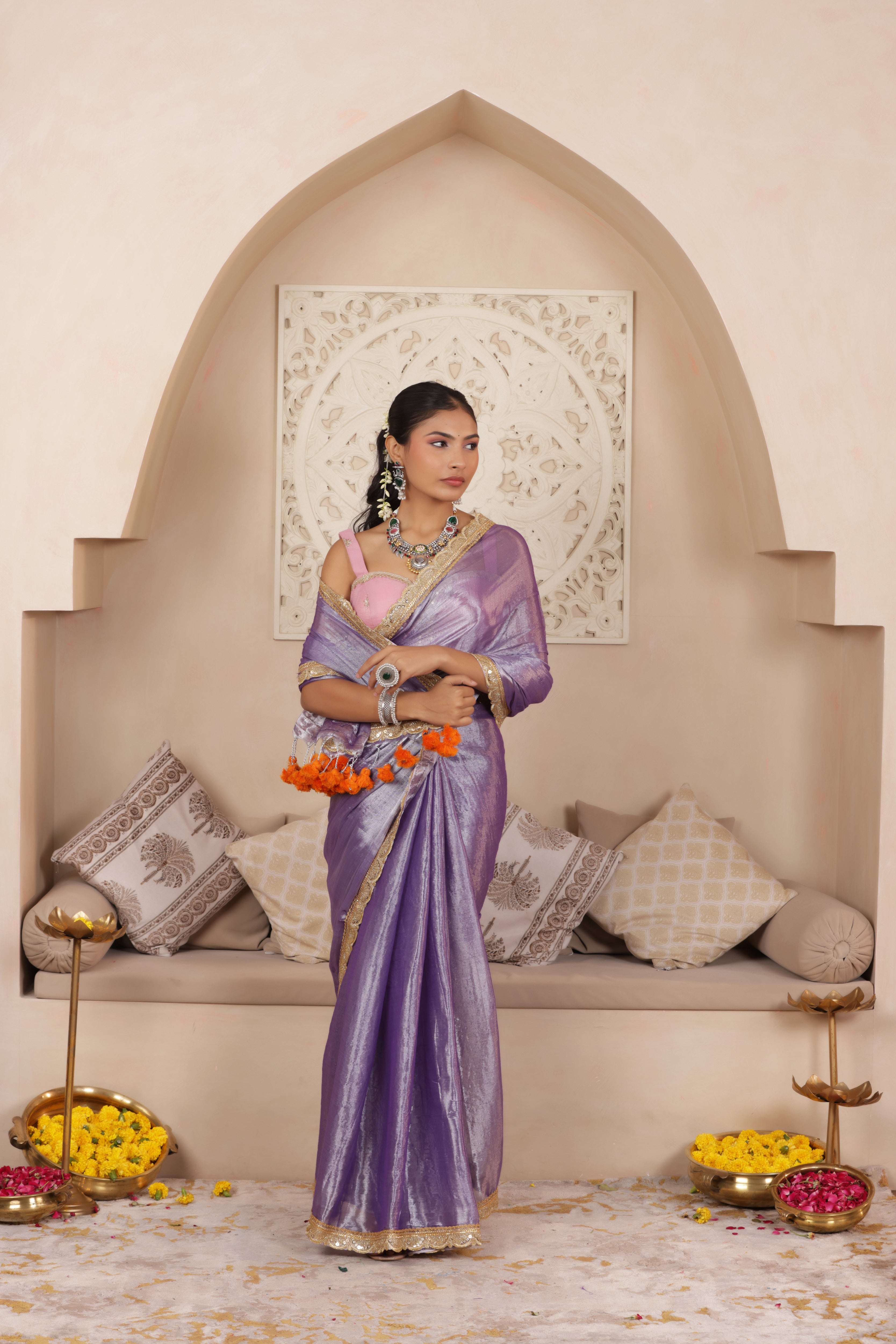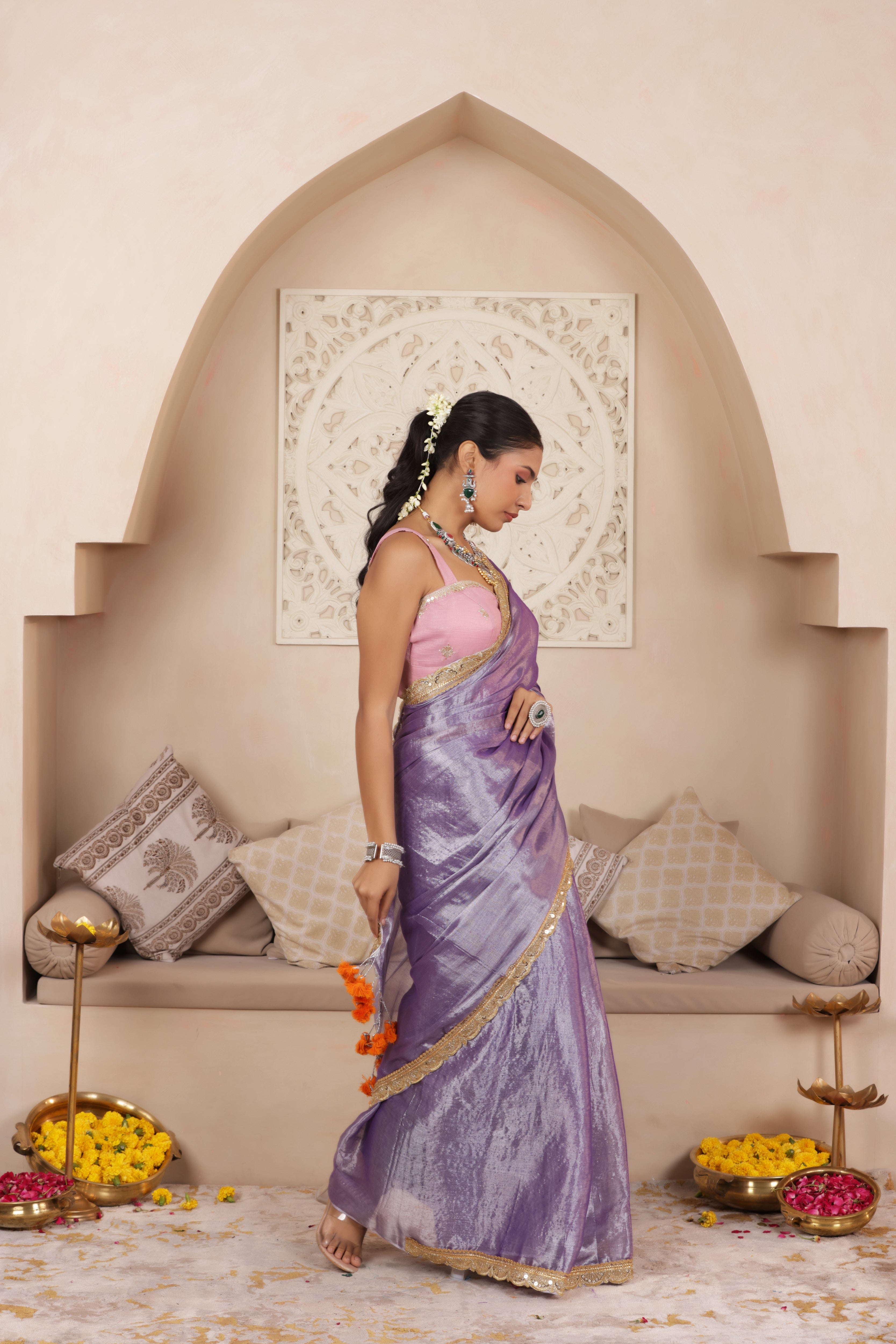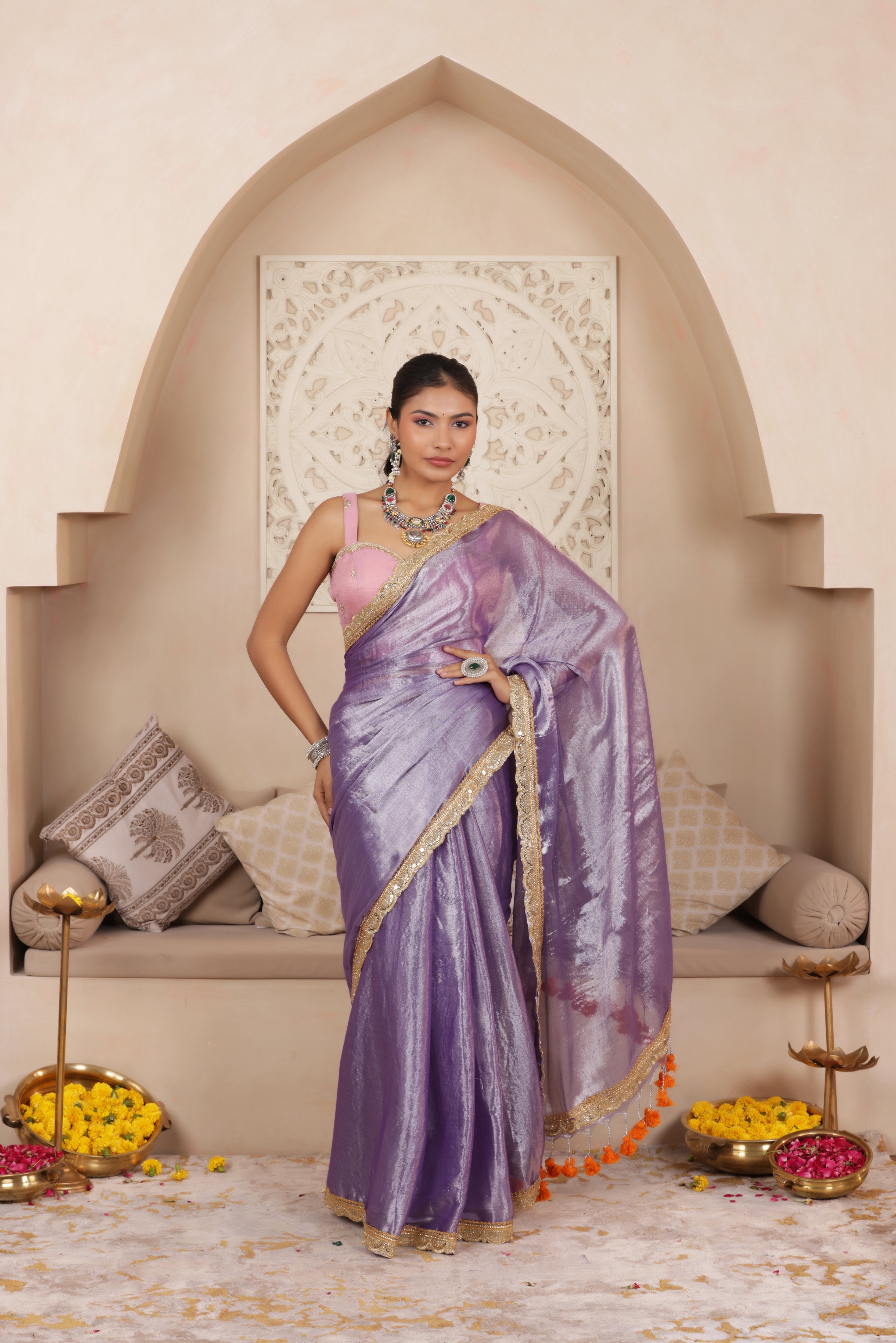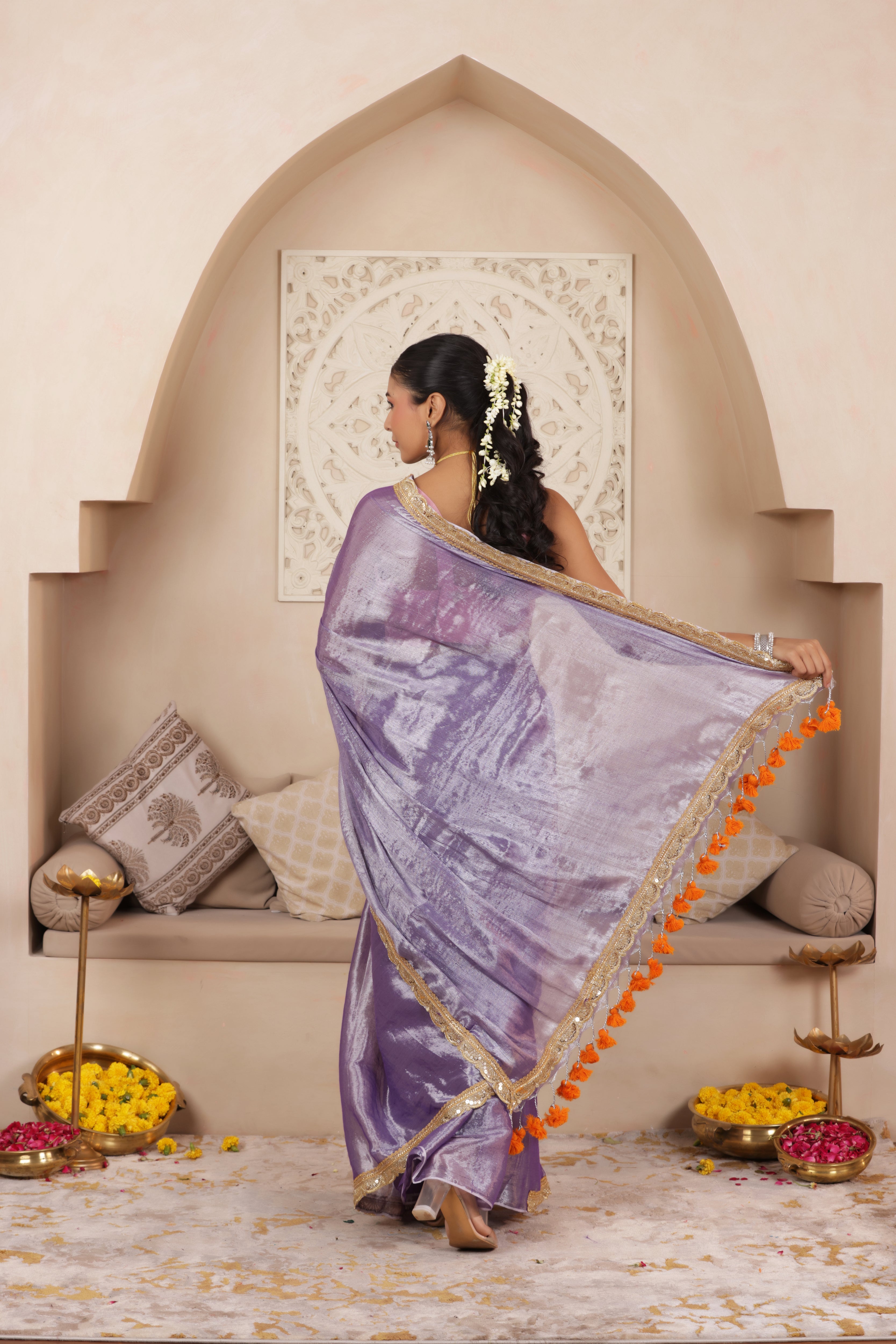 LUSTROUS LAVENDER TISSUE KADHI SAREE WITH INTRICATE LACE EMBELLISHMENT