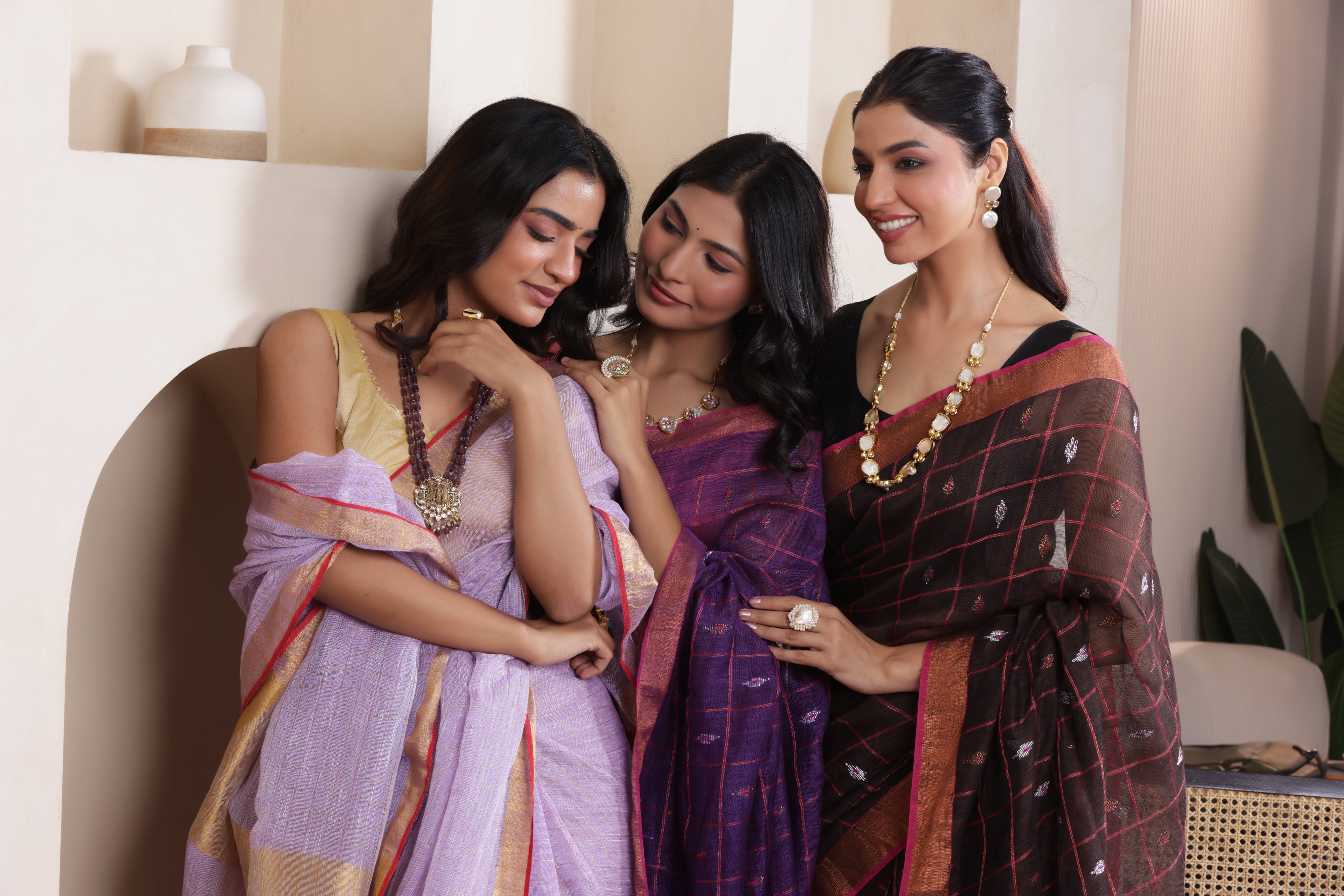 Our sarees are crafted from 100% pure, skin-friendly cotton with no synthetic blends, offering feather-light comfort ideal for hot climates. They’re easy to wear and maintain, with a naturally elegant drape that flatters every silhouette. Each saree is ethically sourced and artisan-crafted, giving you timeless beauty that feels as good as it looks.